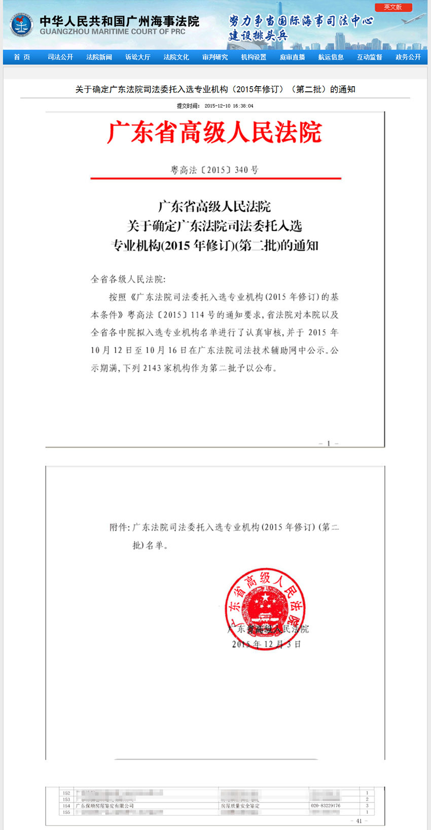 按照粵高法[2015]114號《廣東法院司法委托入選專業(yè)機(jī)構(gòu)(2015年修訂)的基本條件》,經(jīng)過法院審查核實,廣東保順檢測鑒定有限公司順利入選“中華人民共和國廣州海事中級法院”司法委托專業(yè)機(jī)構(gòu)名錄。