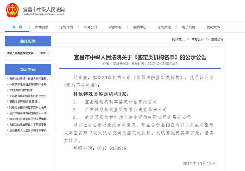 根據最高人民法院《對外委托鑒定、評估、拍賣等工作管理規定》(法辦發[2007]5號)的相關規定,現決定公告自愿報名,經省高、中級法院審核通過的司法委托鑒定機構名單,自2018年1月1日起啟用,廣東保順檢測鑒定有限公司作為全省各級人民法院司法委托鑒定的備選機構。