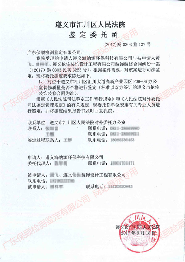 委托單位:貴州省遵義市匯川區(qū)人民法院