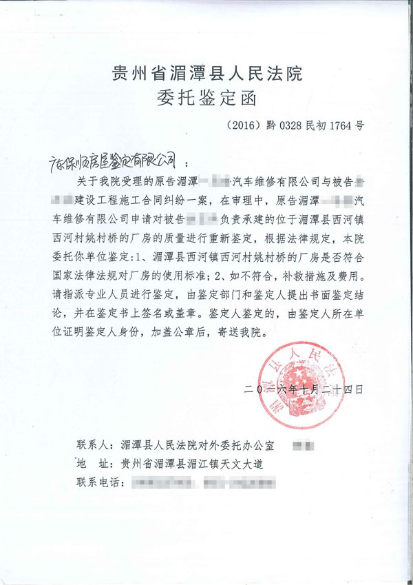由貴州省湄潭縣人民法院審理的原告湄潭***汽車維修有限公司與被告***建設(shè)工程施工合同糾紛一案,受湄潭縣人民法院的房屋鑒定委托,我公司對湄潭縣西河鎮(zhèn)西河村姚村橋的***汽修廠廠房的結(jié)構(gòu)安全性進行鑒定。